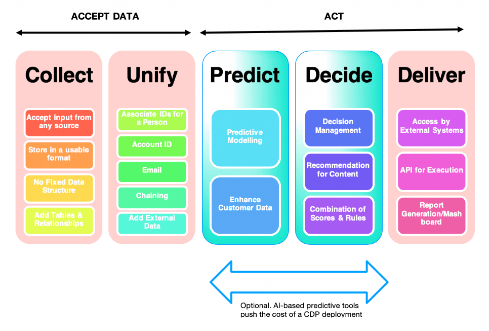 A CDP should be manageable by a marketer. That is almost a prerequisite. As a marketer, that is a big one because it allows you complete control over the tool and processes with very little dependence on a team whose processes and motivations may be completely at variance with your own. Mistake not, you need IT’s help in the initial implementation but once you have it done, CDP’s prebuilt modules or apps reduce the complexity of customization. A good CDP will have worked hard to create a great user experience.